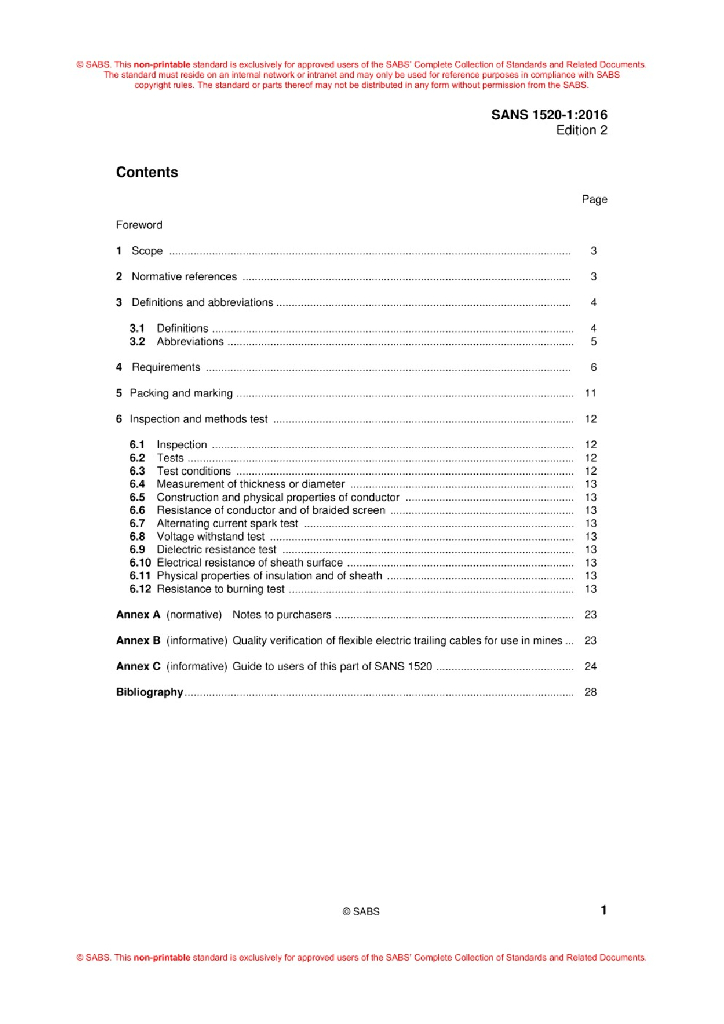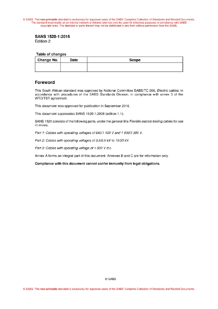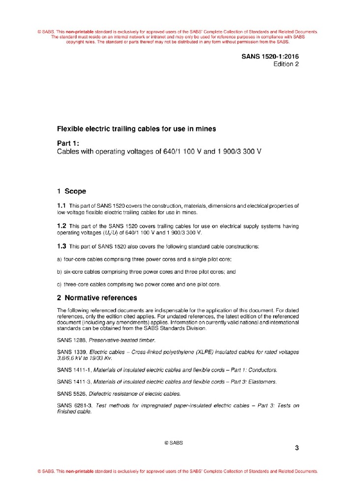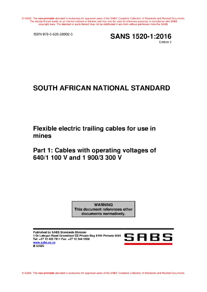 SANS 1520-1:2016 矿用拖拽软电缆 第1部分:低压电缆(640 1100V 和1900 3300V)