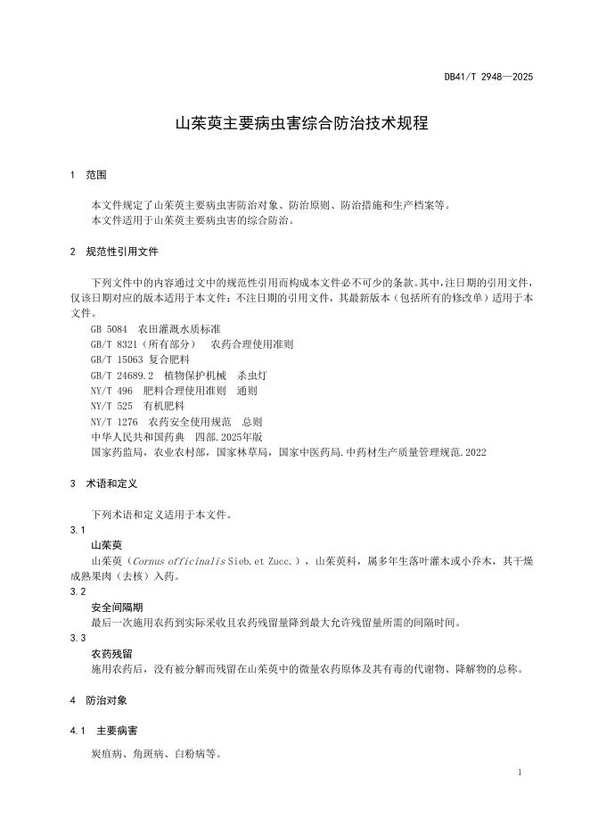 DB41/T 2948-2025 山茱萸主要病虫害综合防治技术规程