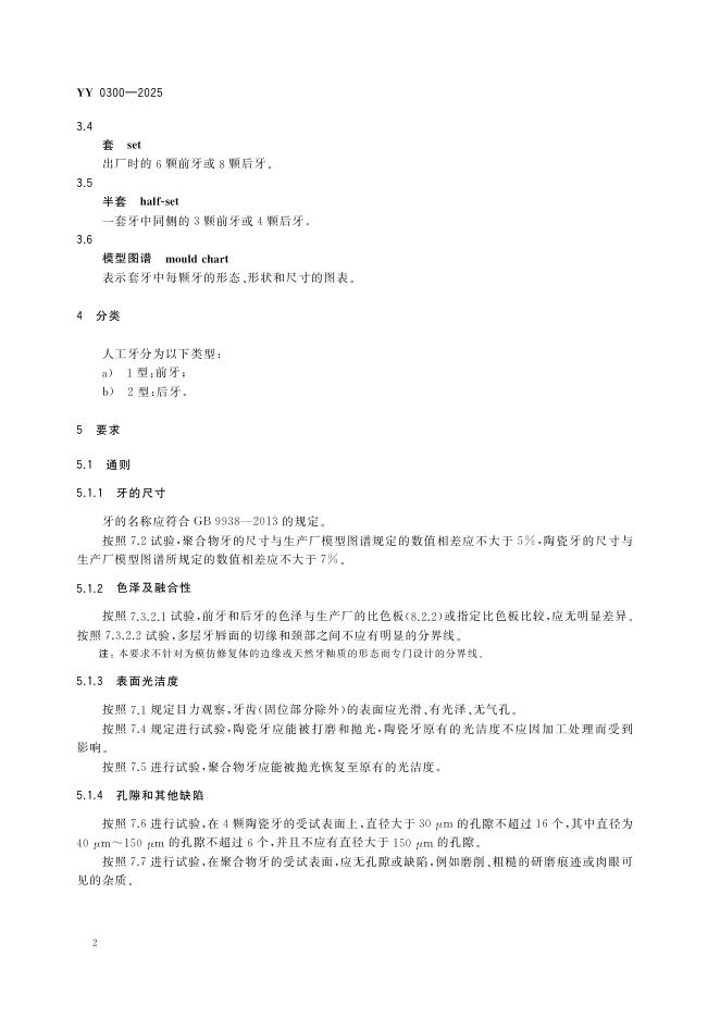 YY 0300-2025 牙科学 修复用人工牙