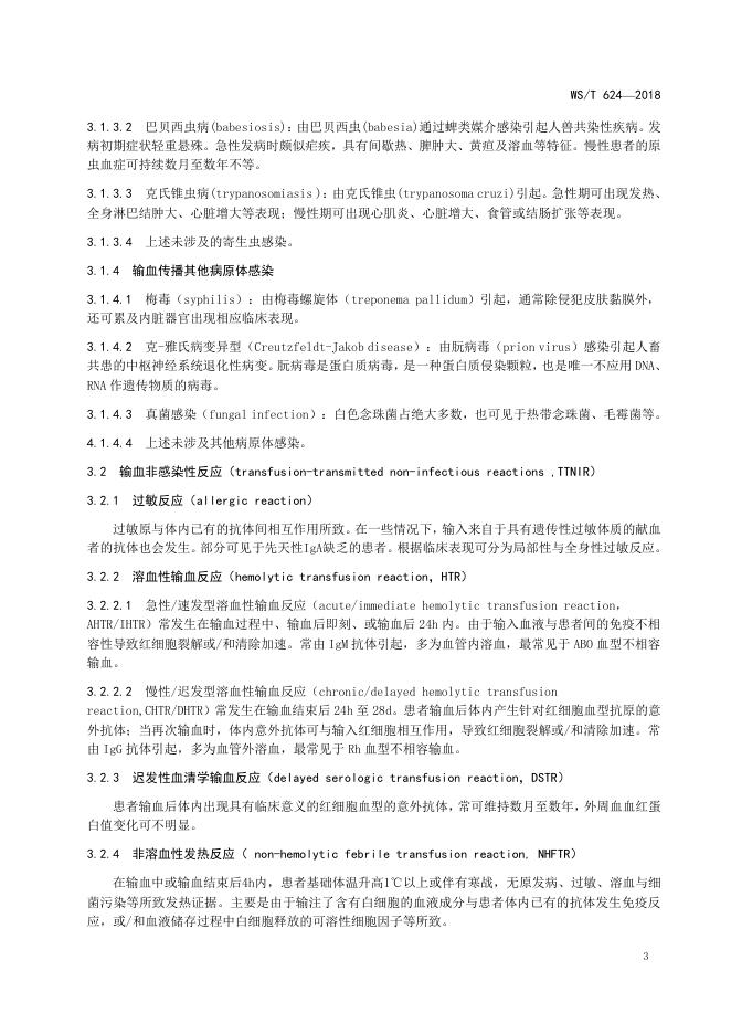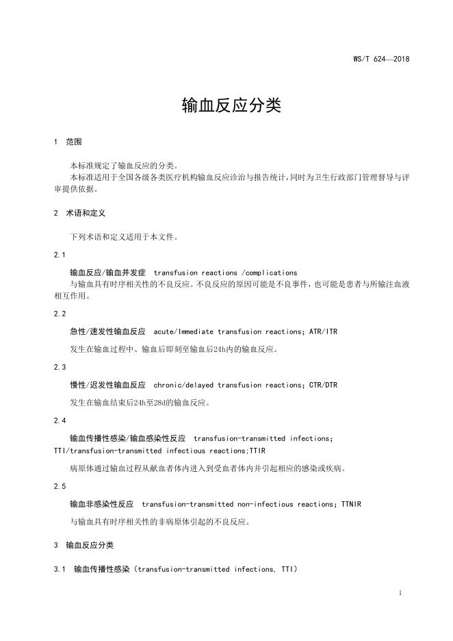 WS/T 624-2018 输血反应分类