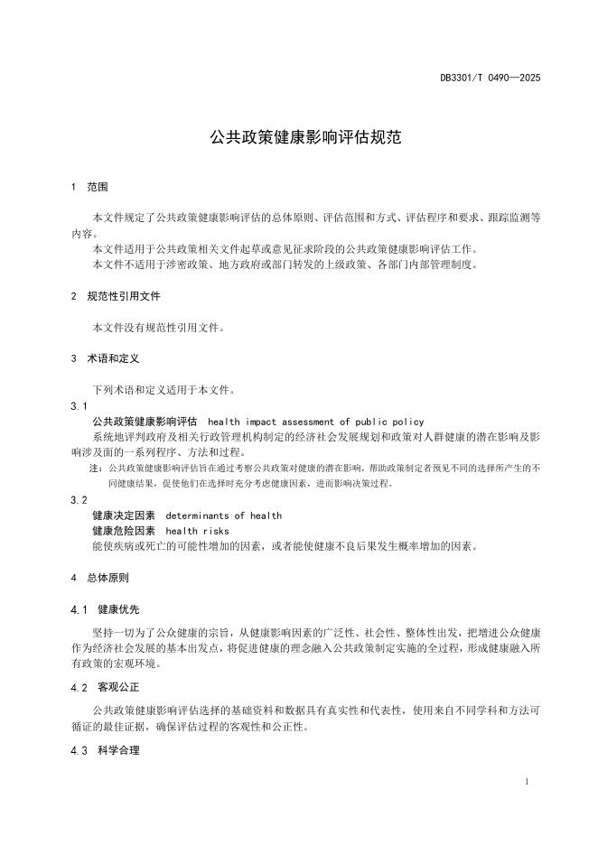 DB3301/T 0490-2025 公共政策健康影响评估规范