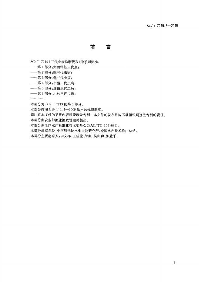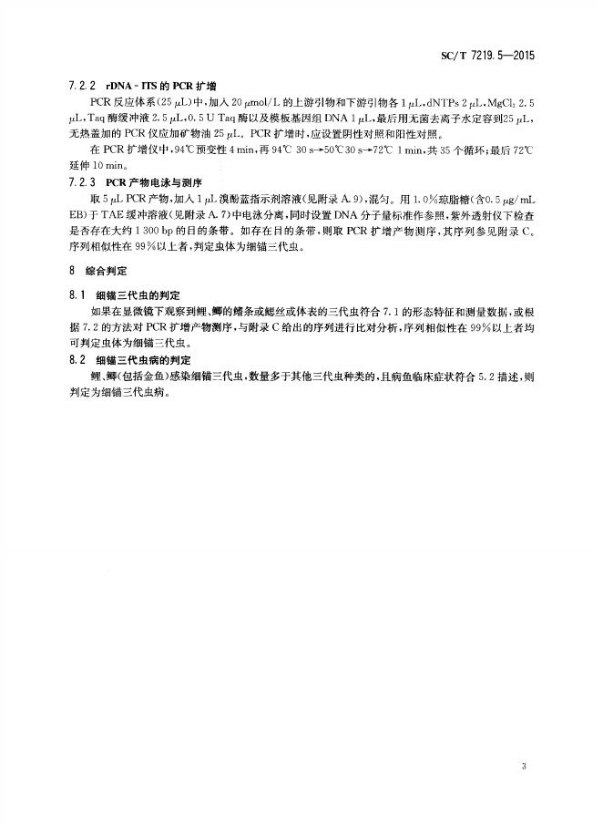 SC/T 7219.5-2015 三代虫病诊断规程 第5部分:细锚三代虫病