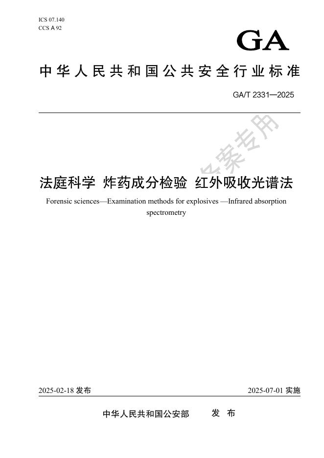 GA/T 2331-2025 法庭科学 炸药成分检验 红外吸收光谱法