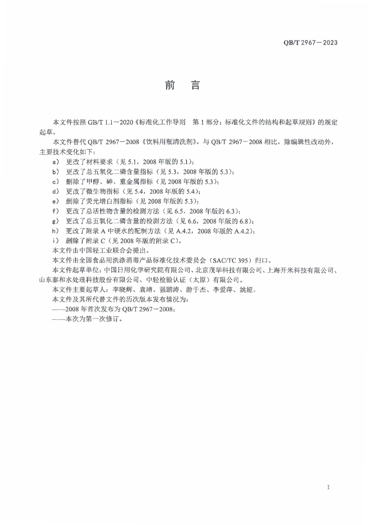中国日用化学研究院有限公司、北京茂华科技有限公司、上海开米科技有限公司、山东泰和水处理科技股份有限公司、中轻检验认证(太原)有限公司