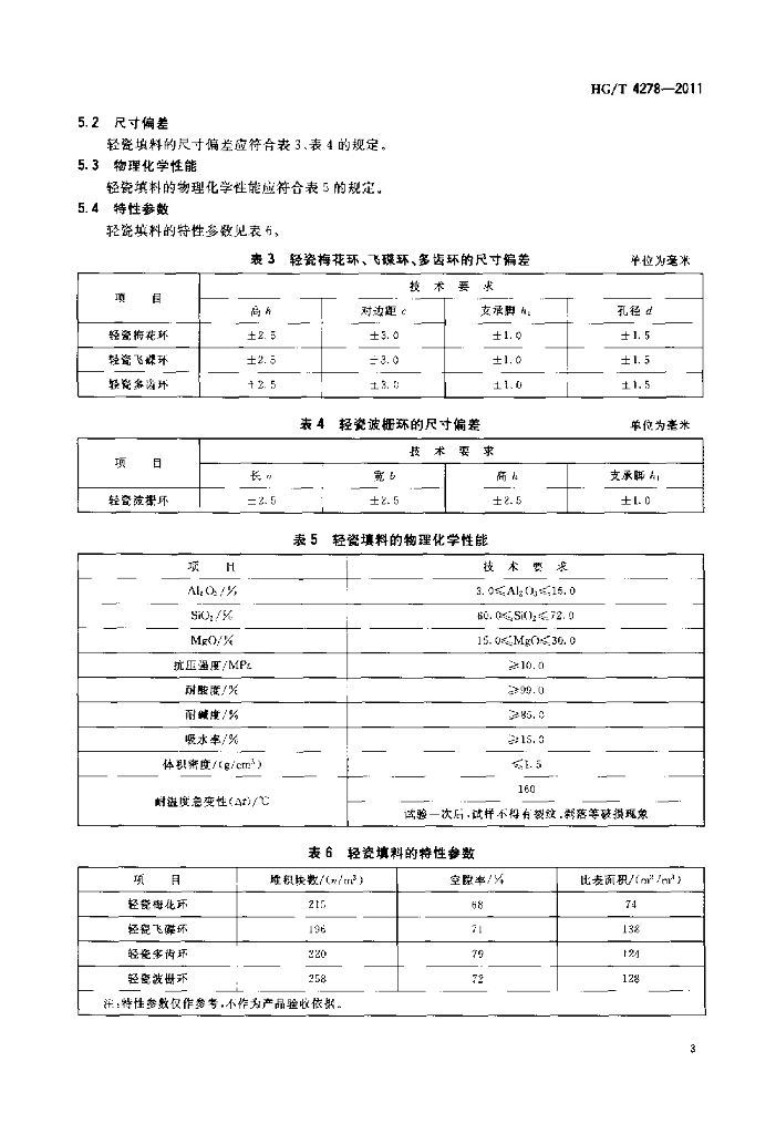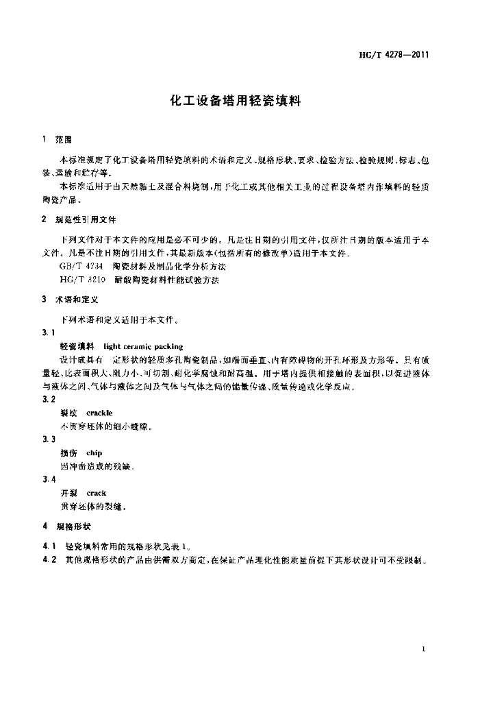 HG/T 4278-2011 化工设备塔用轻瓷填料