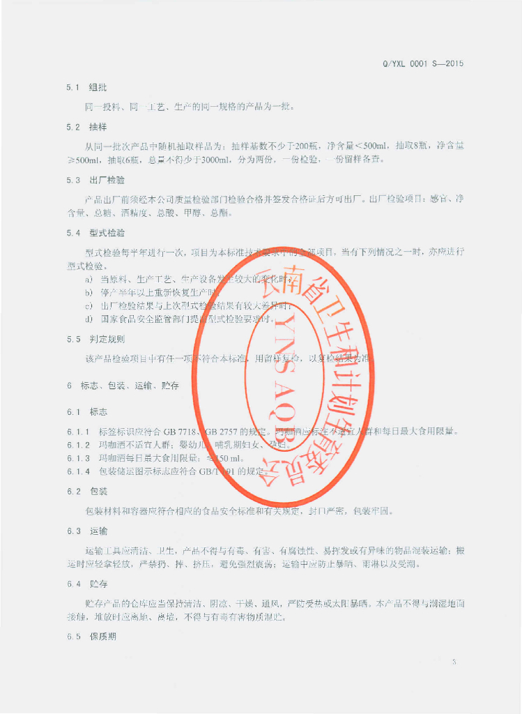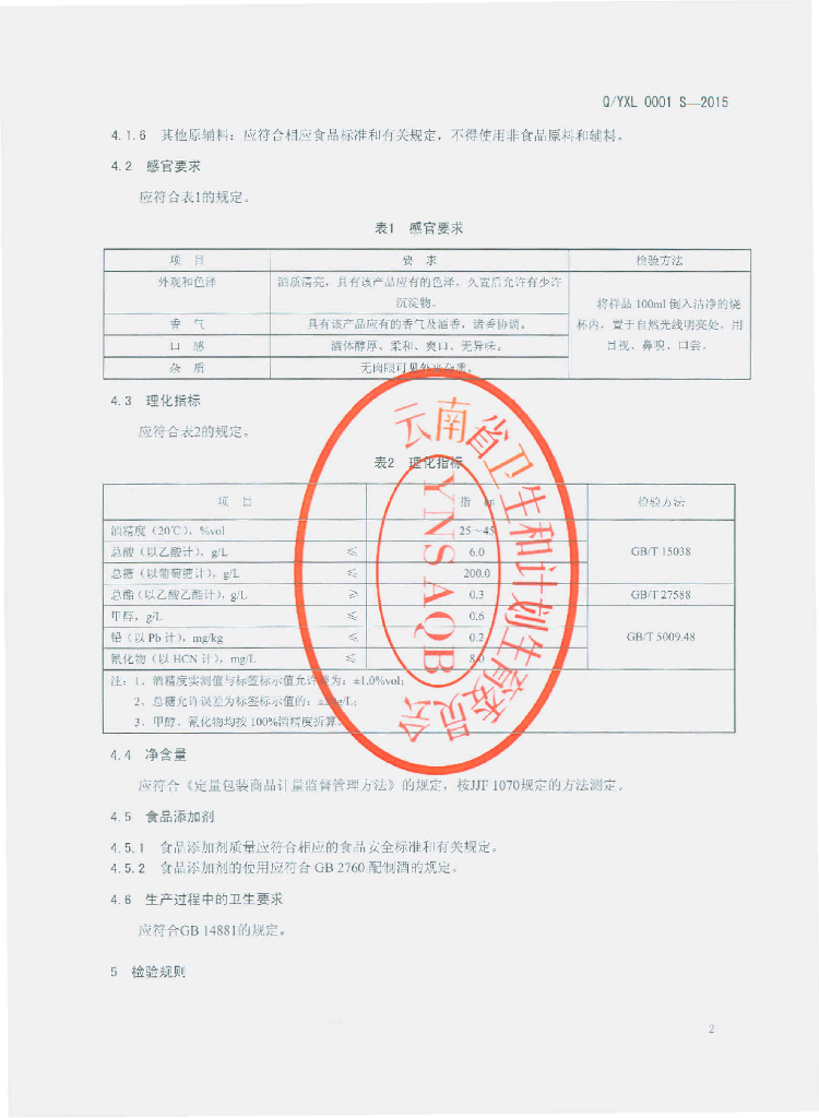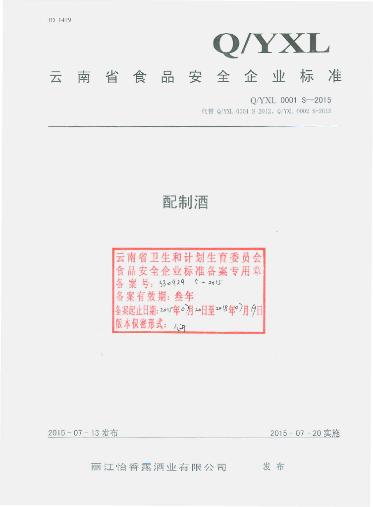 Q/YXL 0001S-2015 丽江怡香露酒业有限公司 配制酒