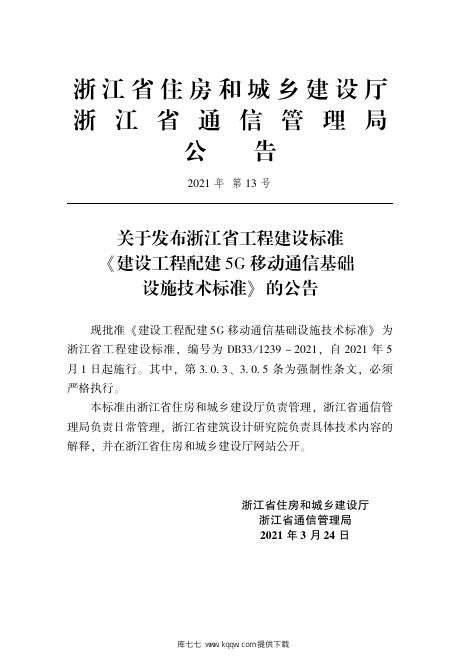 DB33 1239-2021 建设工程配建5G移动通信基础设施技术标准