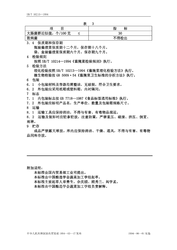 SB/T 10215-1994 酱渍菜