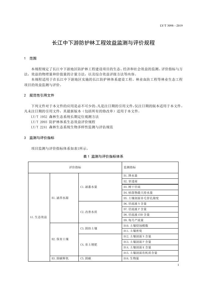 LY/T 3098-2019 长江中下游防护林工程效益监测与评价