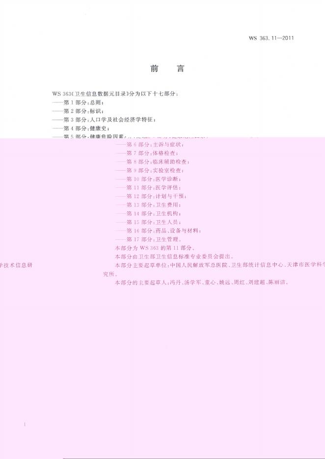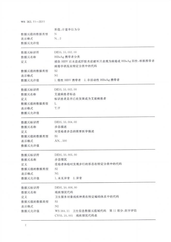 WS 363.11-2011 卫生信息数据元目录 第11部分:医学评估