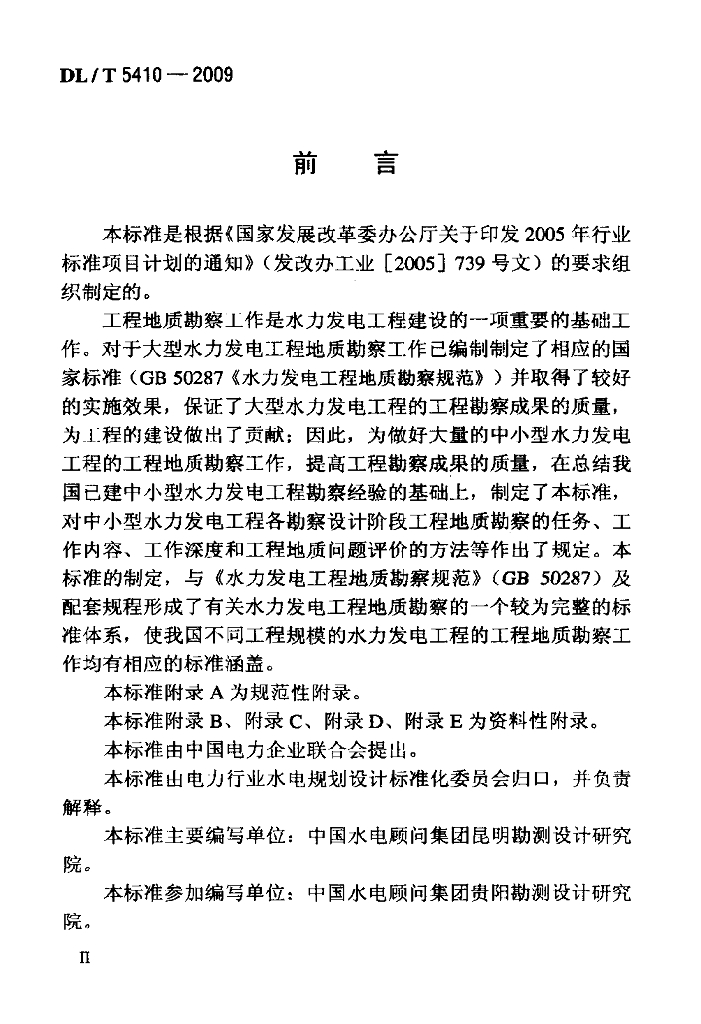 DL/T 5410-2009 中小型水力发电工程地质勘察规范