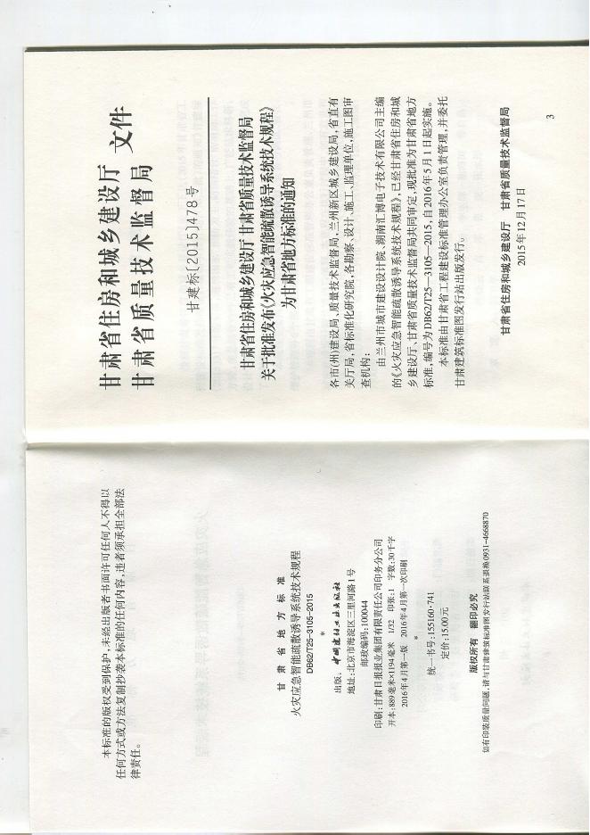 DB62/T 25-3015-2015 火灾应急智能疏散诱导系统技术规程