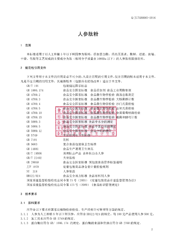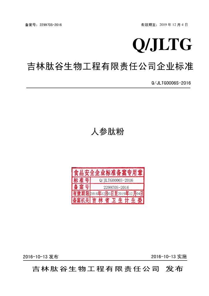 Q/JLTG 0006S-2016 吉林肽谷生物工程有限责任公司 人参肽粉