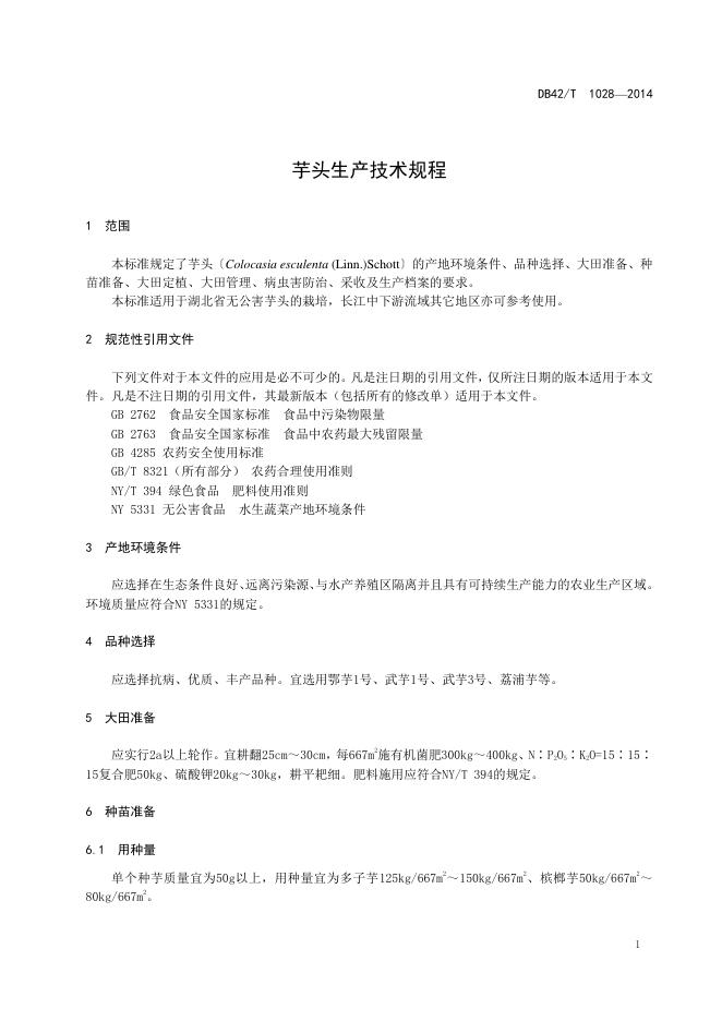 DB42/T 1028-2014 芋头生产技术规程