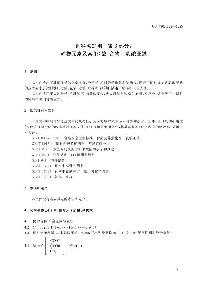 GB 7300.309-2025 饲料添加剂 第3部分: 矿物元素及其络(螯)合物 乳酸亚铁