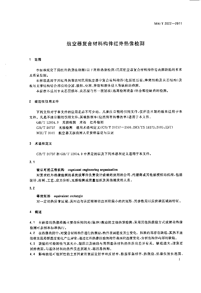 MH/T 3022-2011 航空器复合材料构件红外热像检测