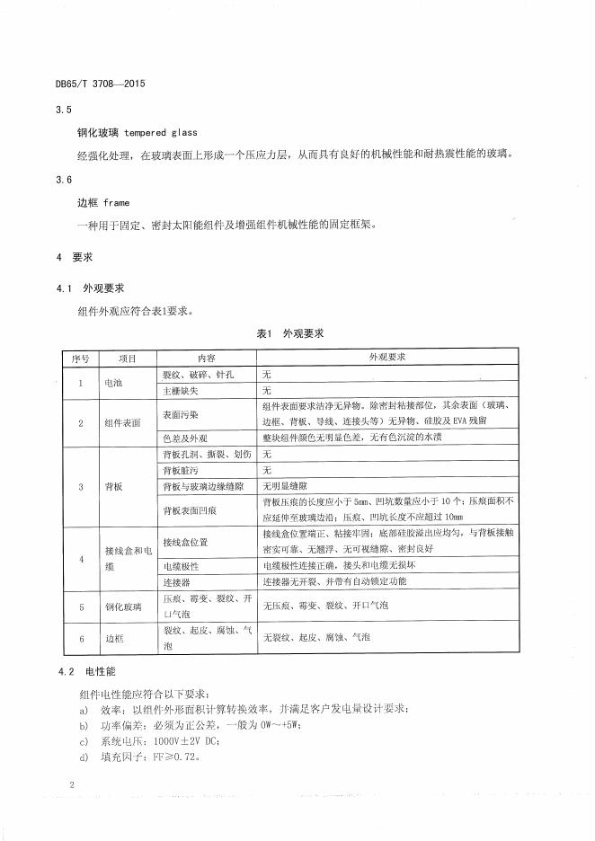 DB65/T 3708-2015 地面用晶体硅光伏组件技术条件