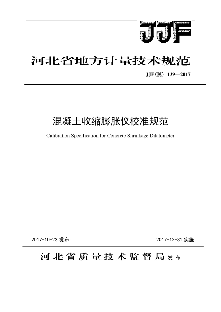 JJF(冀)139-2017 混凝土收缩膨胀仪校准规范