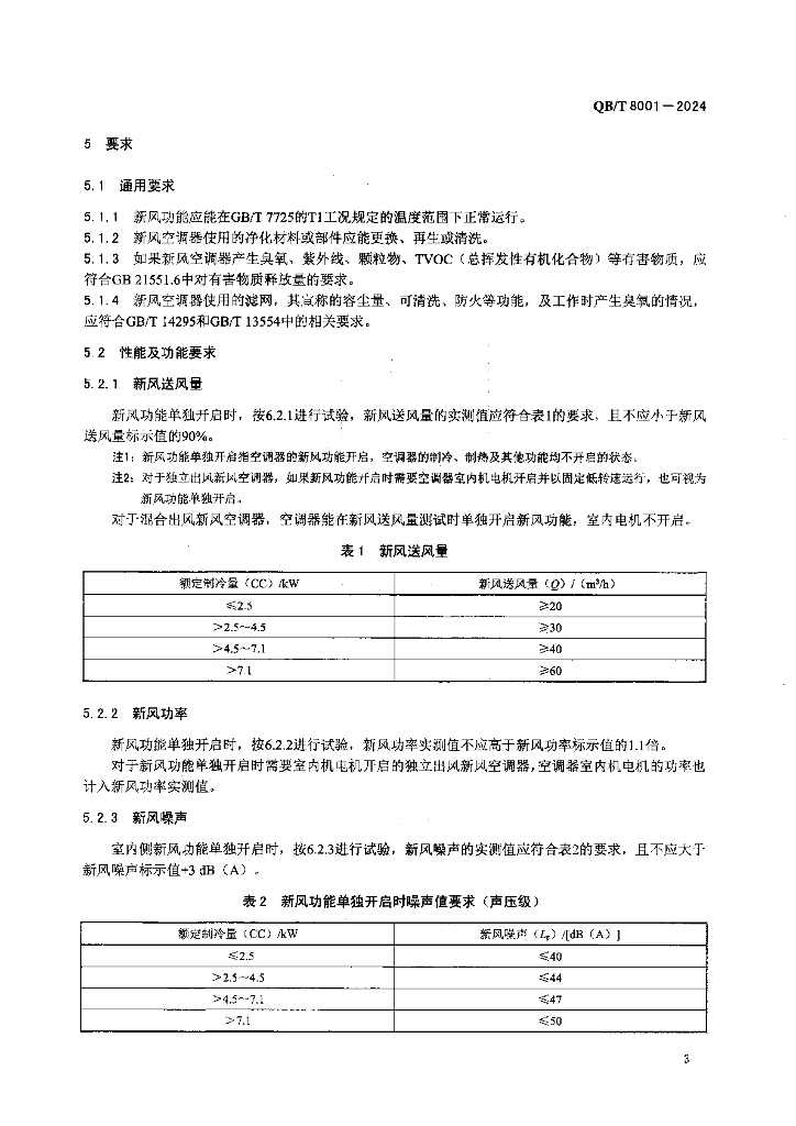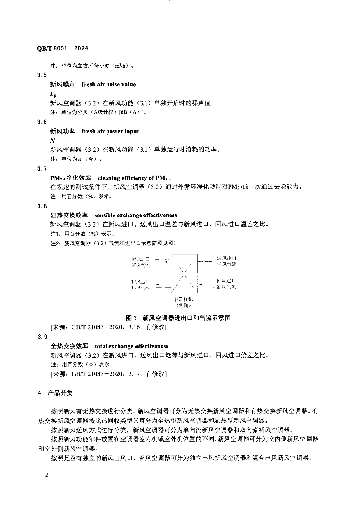 QB/T 8001-2024 房间空调器新风功能评价规范