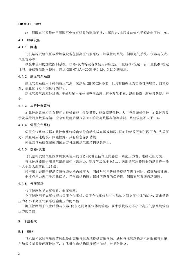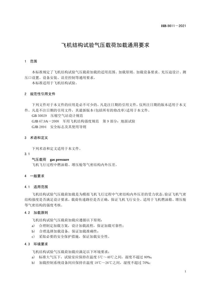 HB 8611-2021 飞机结构试验气压载荷加载通用要求