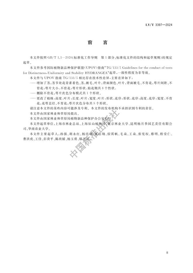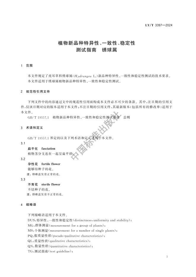 LY/T 3397-2024 植物新品种特异性、一致性、稳定性测试指南 绣球属
