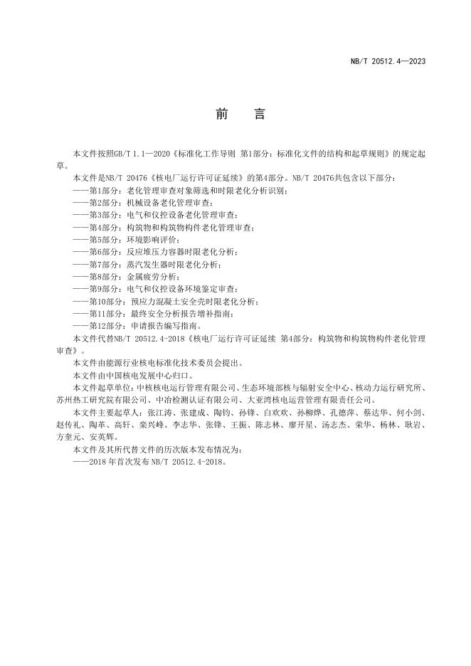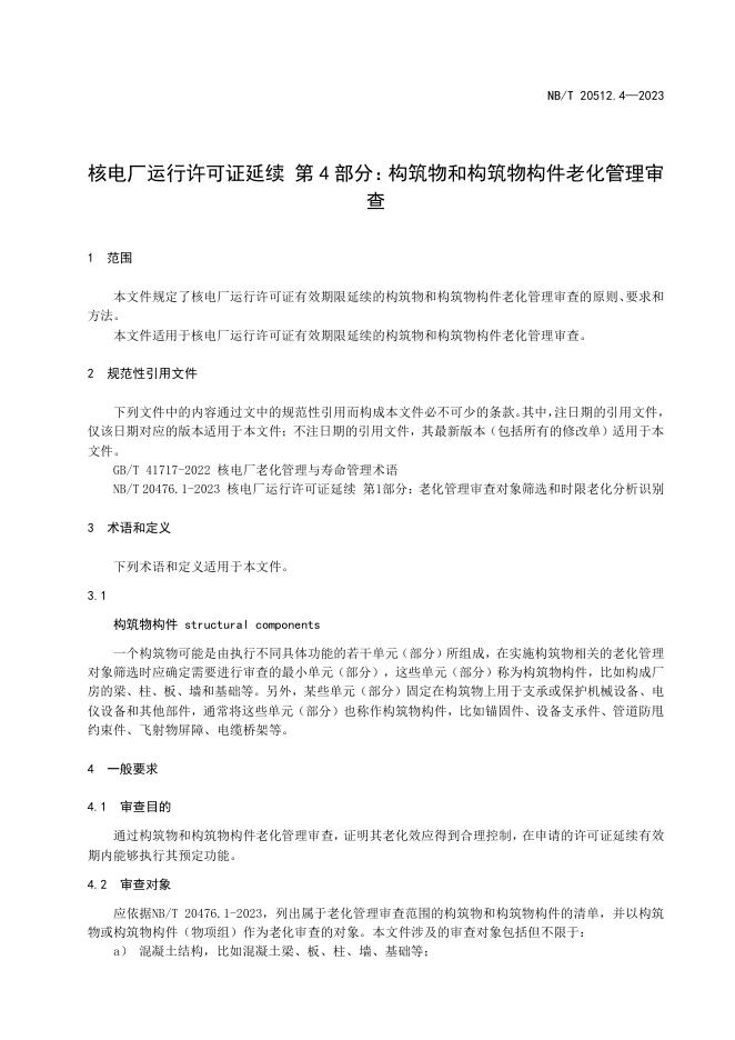 NB/T 20512.4-2023 核电厂运行许可证延续 第4部分:构筑物和构筑物构件老化管理审查