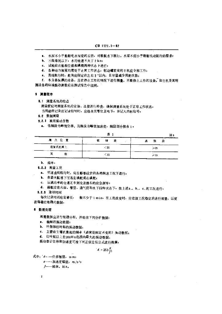 CB 1171.1-1987 船舶设备环境测量方法 振动