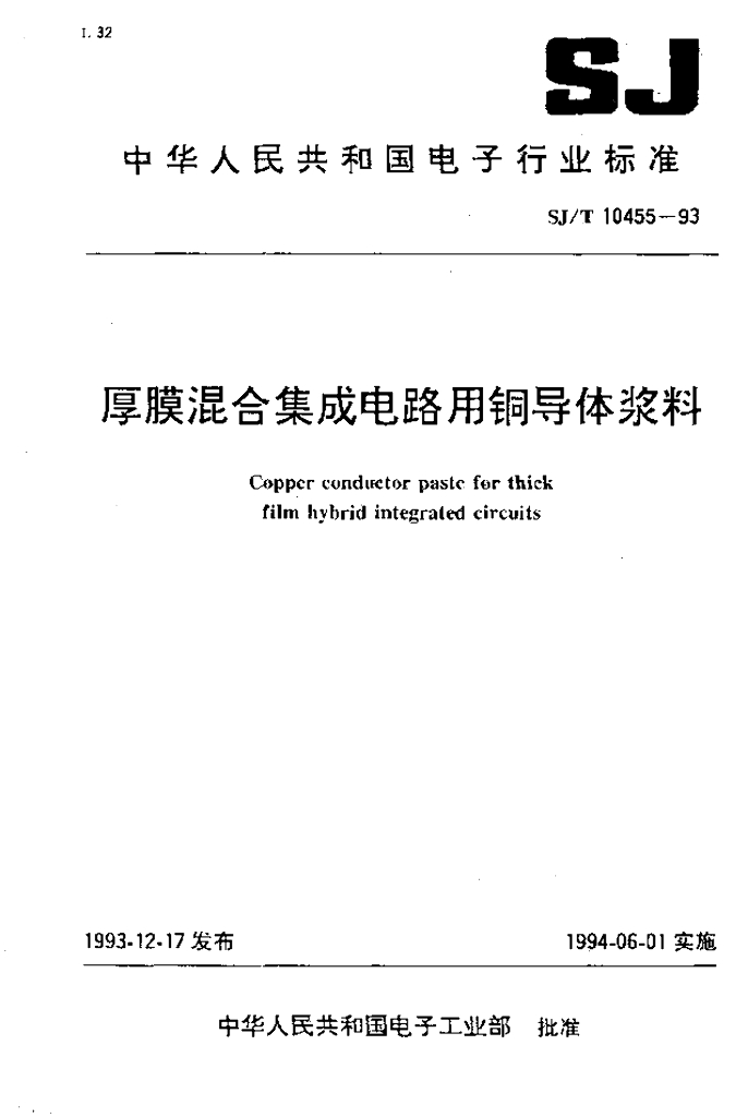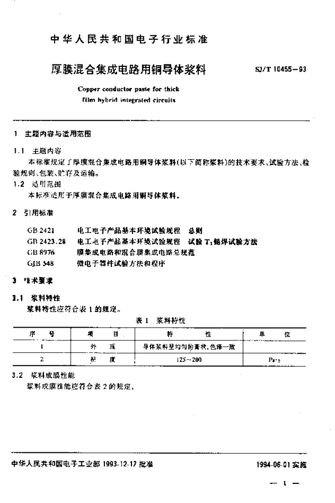 SJ/T 10455-1993 厚膜混合集成电路用铜导体浆料