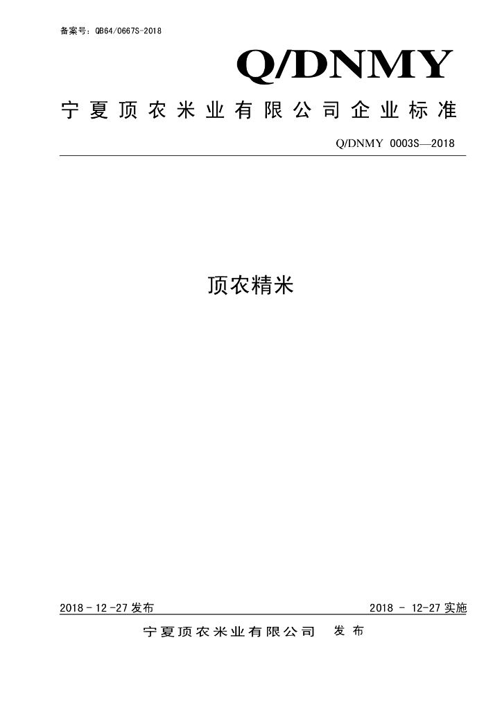 Q/DNMY 0003S-2018 顶农精米