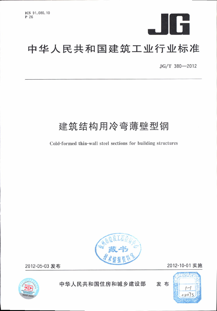 JG/T 380-2012 建筑结构用冷弯薄壁型钢