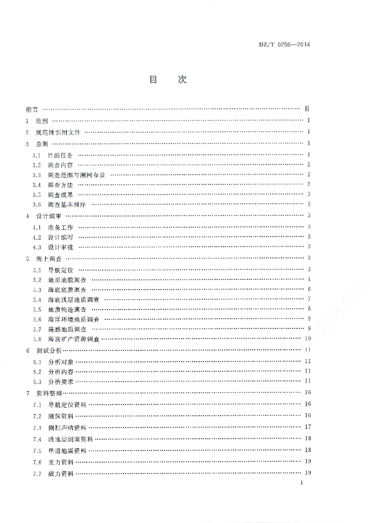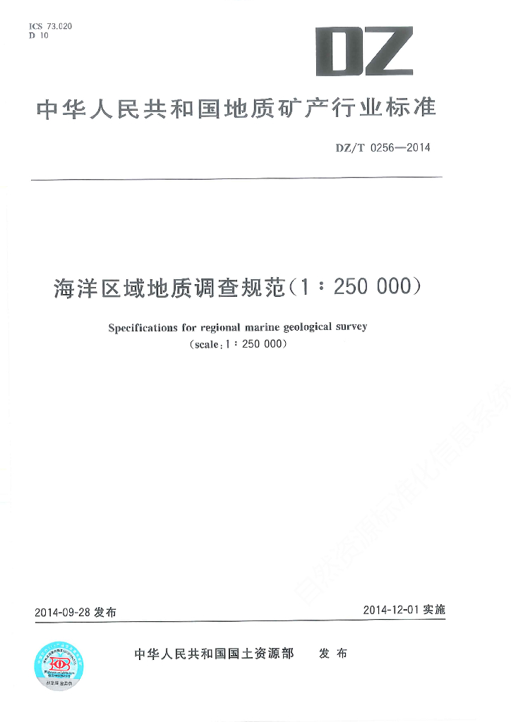 DZ/T 0256-2014 海洋区域地质调查规范(1∶250 000)