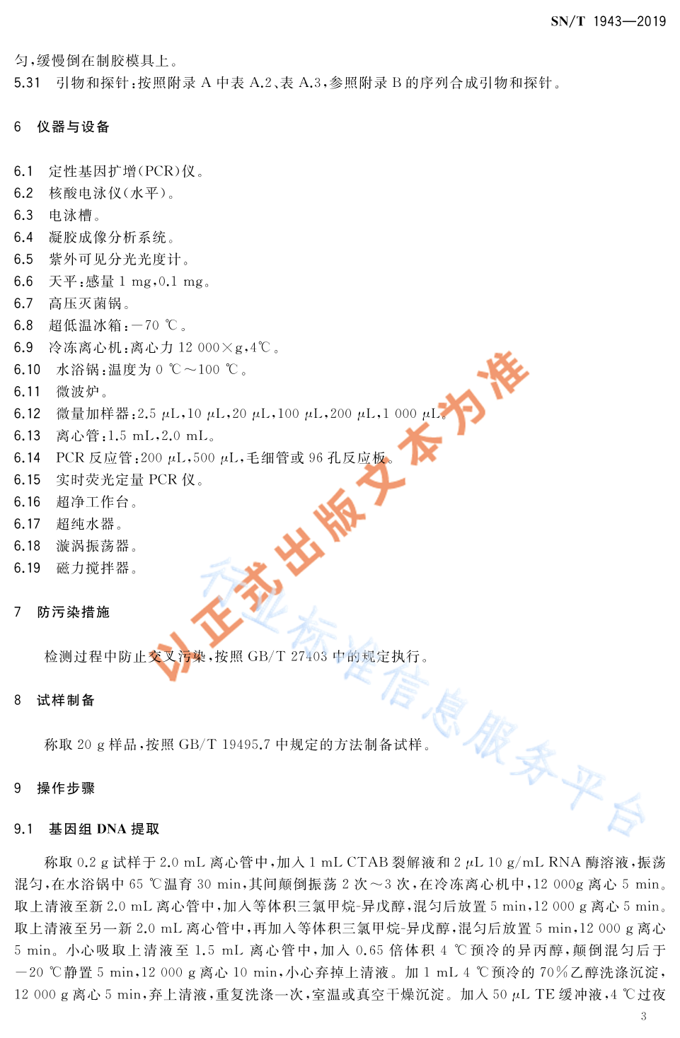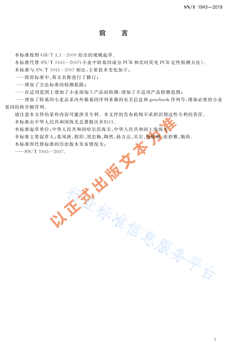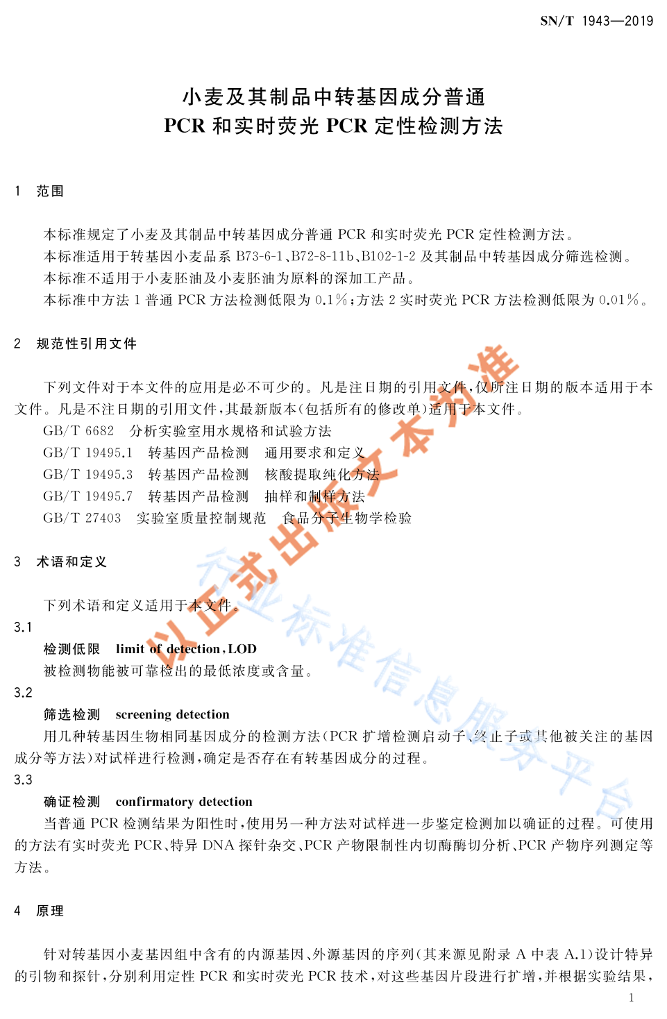 SN/T 1943-2019 小麦及其制品中转基因成分普通PCR和实时荧光PCR定性检测方法