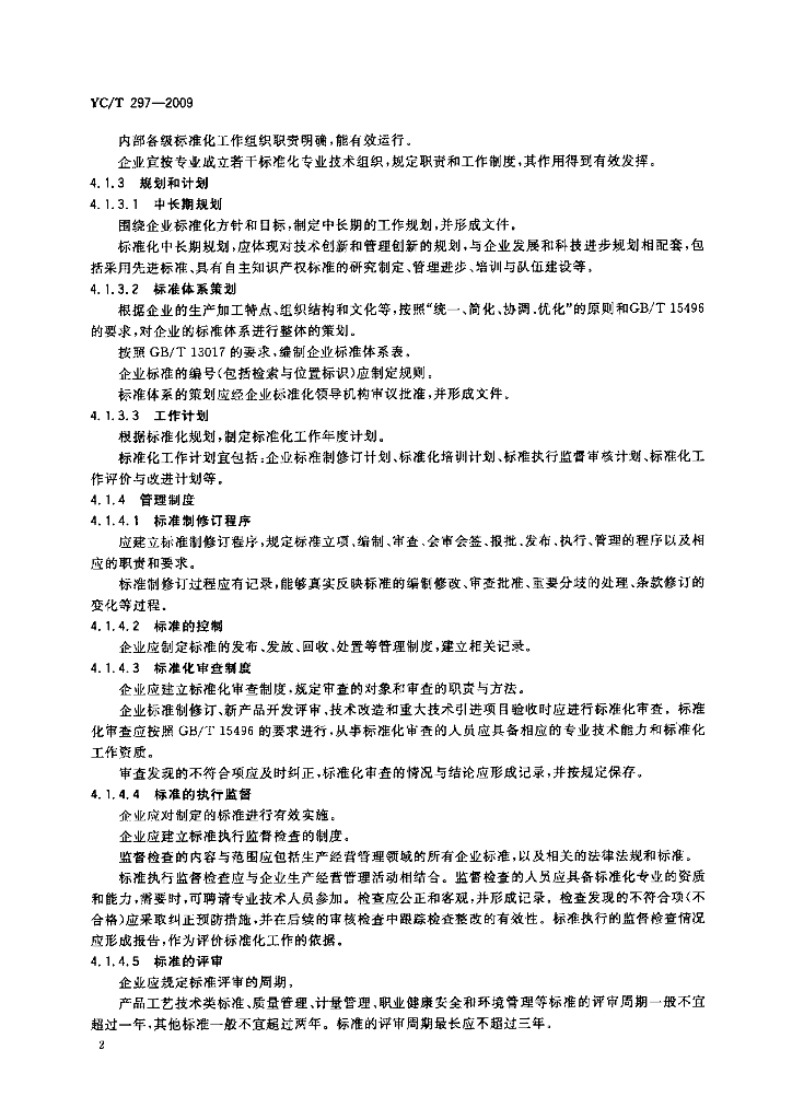 YC/T 297-2009 打叶复烤企业标准化工作的要求及评价
