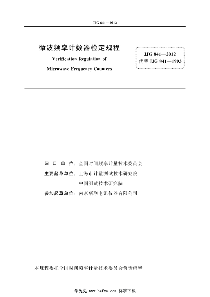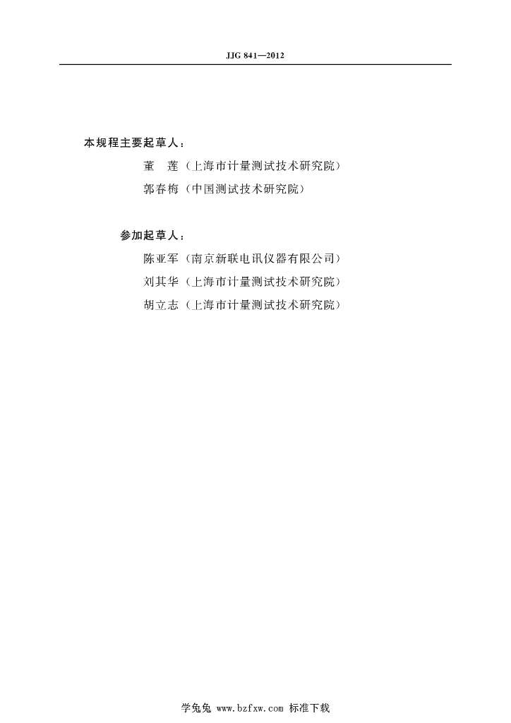 董莲(上海市计量测试技术研究院)、郭春梅(中国测试技术研究院)、陈亚军(南京新联电讯仪器有限公司)、刘其华(上海市计量测试技术研究院)、胡立志(上海市计量测试技术研究院)