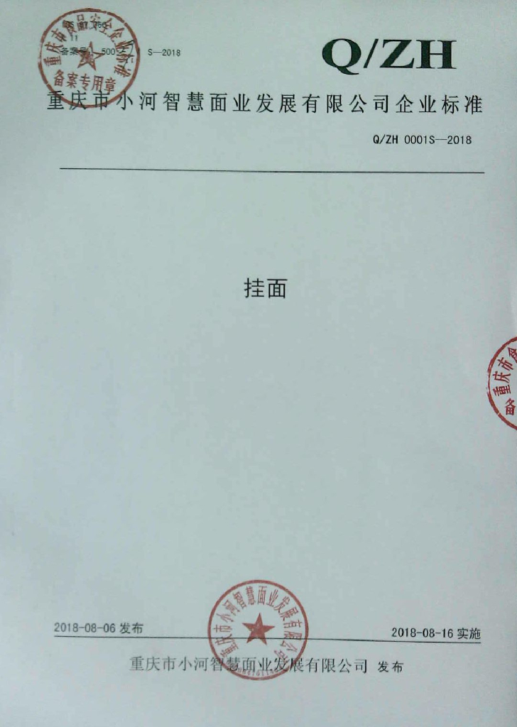 Q/ZH 0001S-2018 挂面