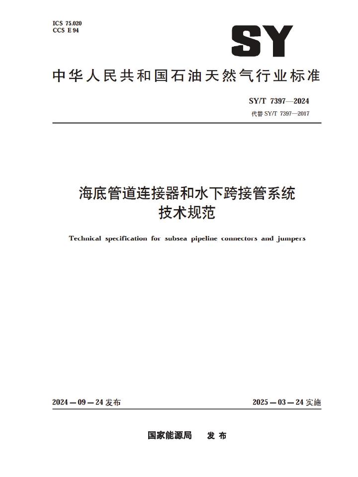 SY/T 7397-2024 海底管道连接器和水下跨接管系统技术规范