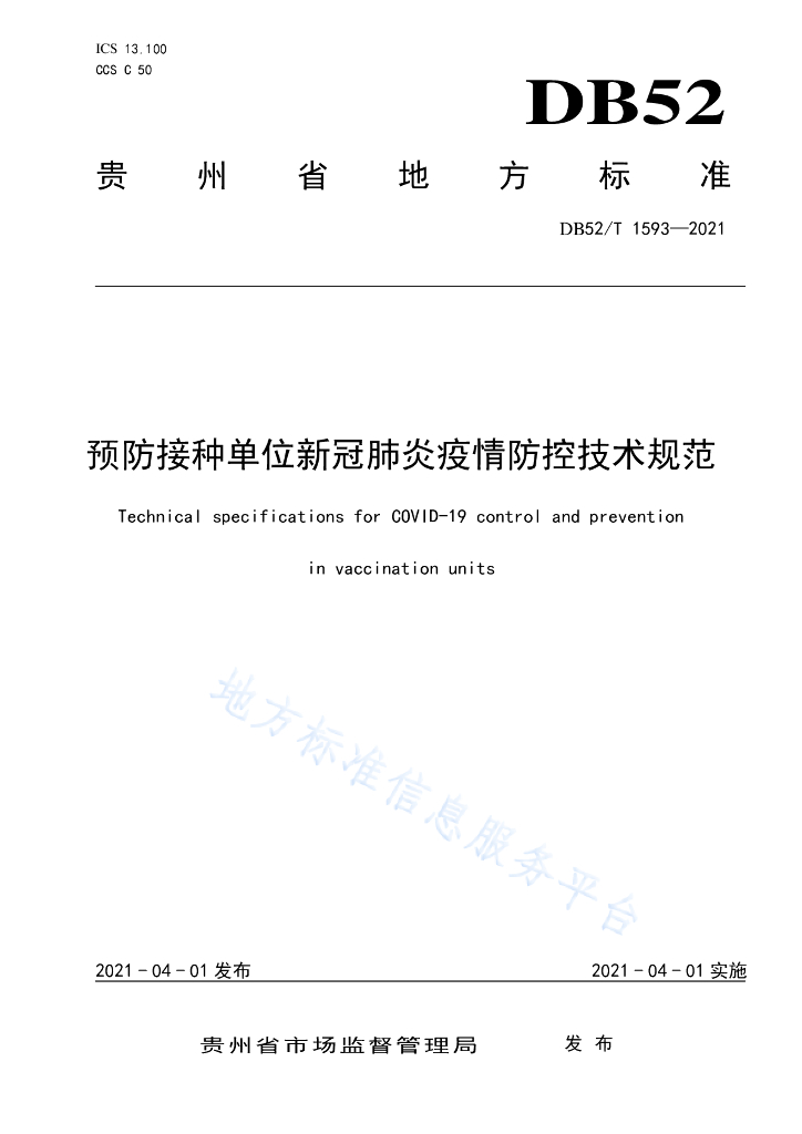 DB52/T 1593-2021 预防接种单位新冠肺炎疫情防控技术规范
