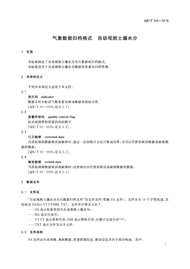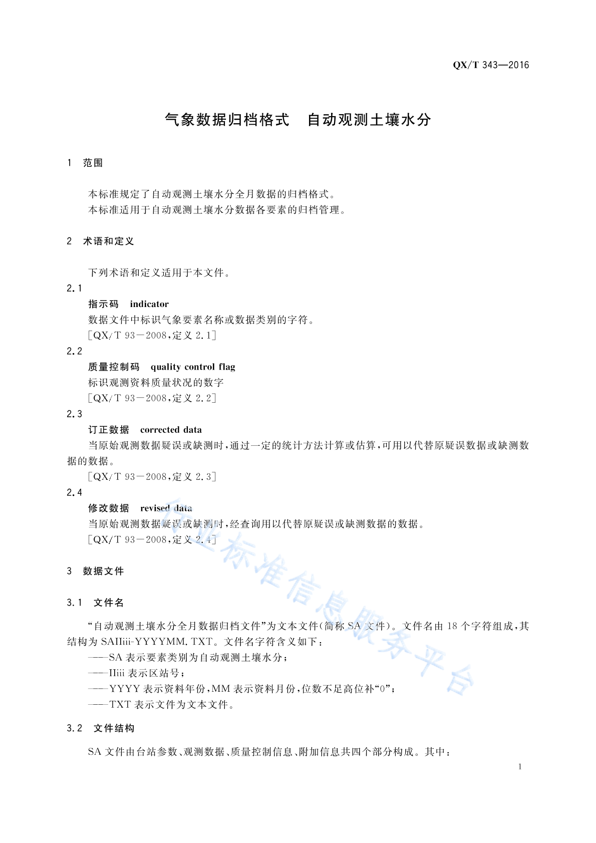 QX/T 343-2016 气象数据归档格式 自动观测土壤水分