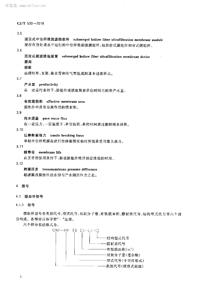 CJ/T 530-2018 饮用水处理用浸没式中空纤维超滤膜组件及装置