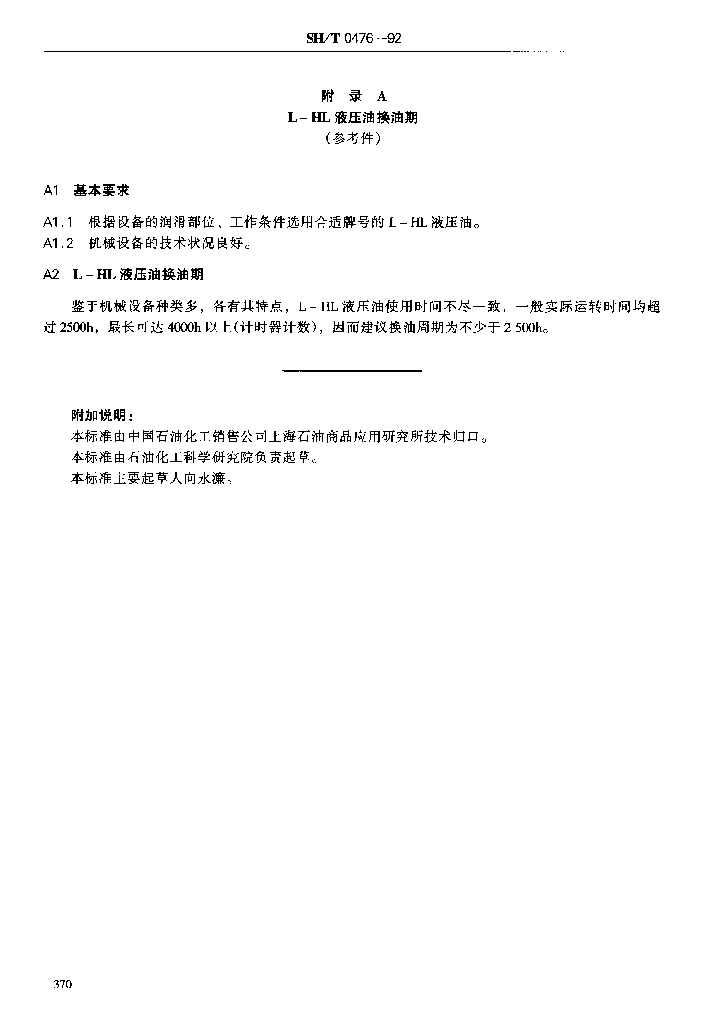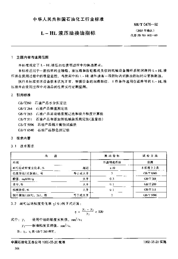 SH/T 0476-1992 L-HL液压油换油指标