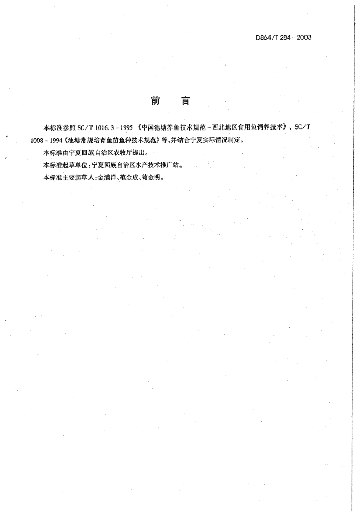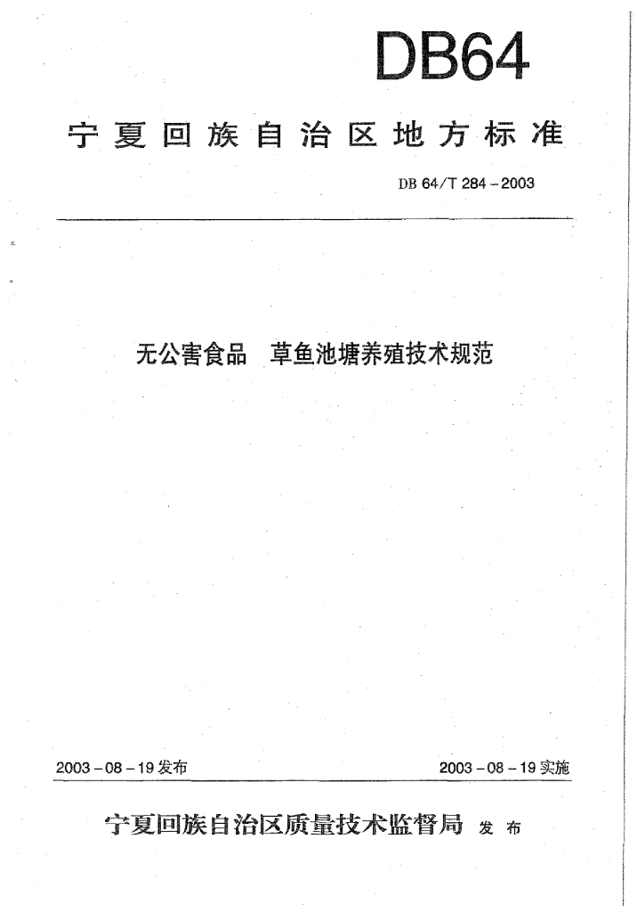 DB64/T 284-2003 无公害食品 草鱼池塘养殖技术规范