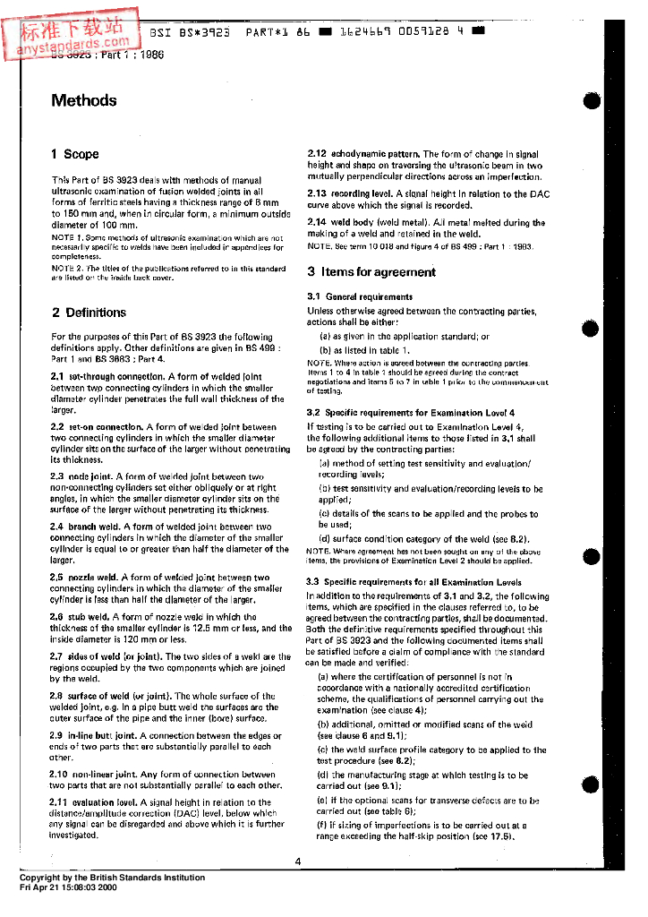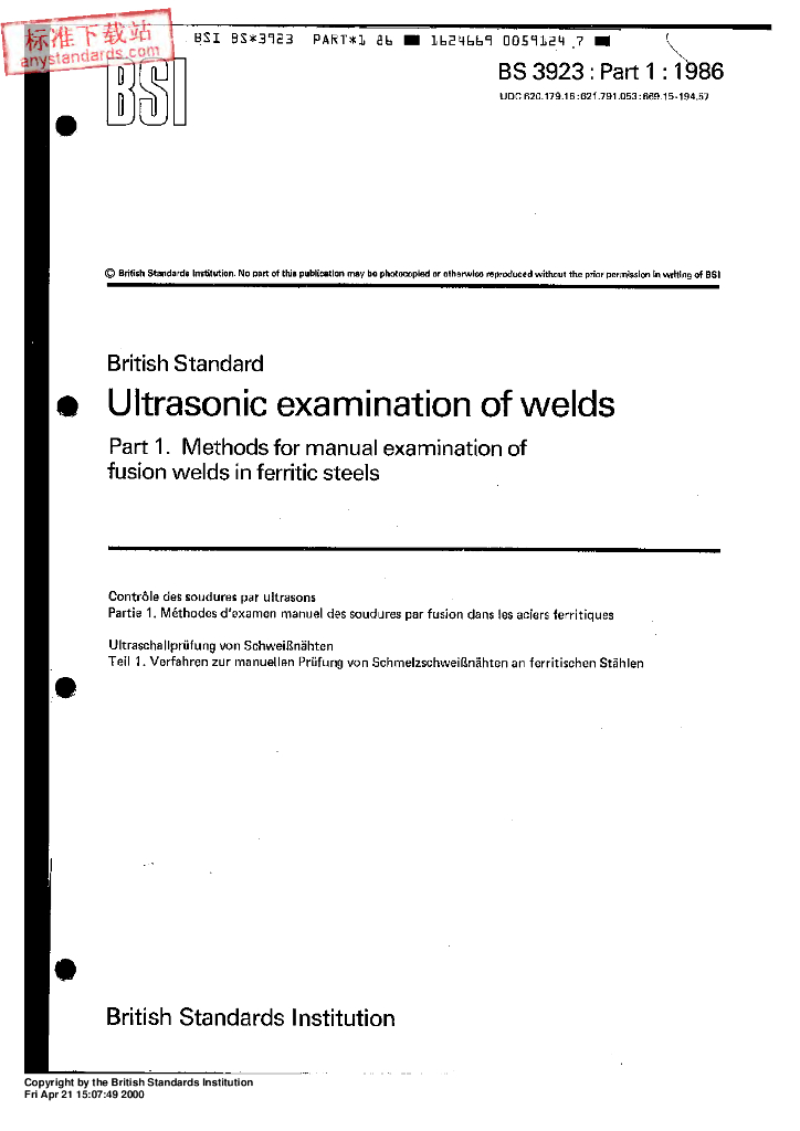 BS 3923-1-1986 焊接的超声检验.第1部分 铁素体钢熔焊的人工检验方法