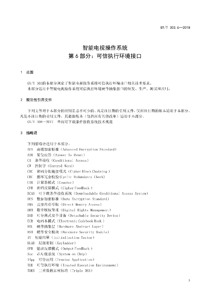 GY/T 303.6-2018 智能电视操作系统 第6部分:可信执行环境接口