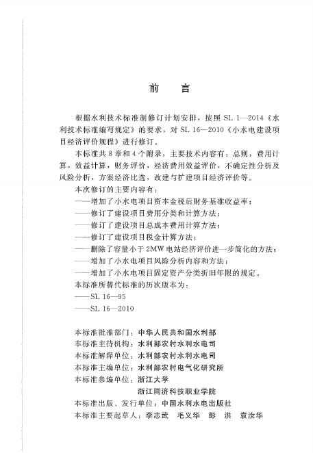 SL/T 16-2019 小水电建设项目经济评价规程
