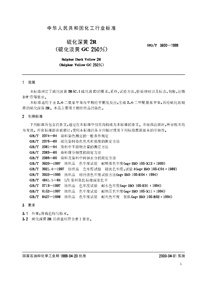 HG/T 3600-1999 硫化深黄2R(硫化淡黄GC250)