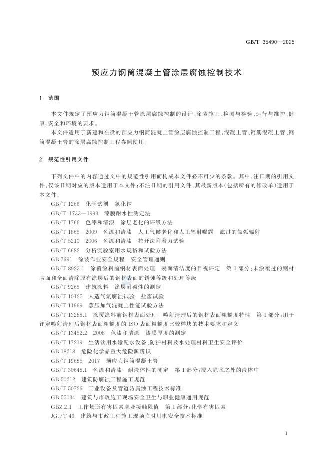 GB/T 35490-2025 预应力钢筒混凝土管涂层腐蚀控制技术