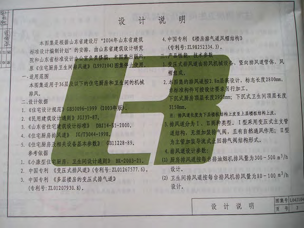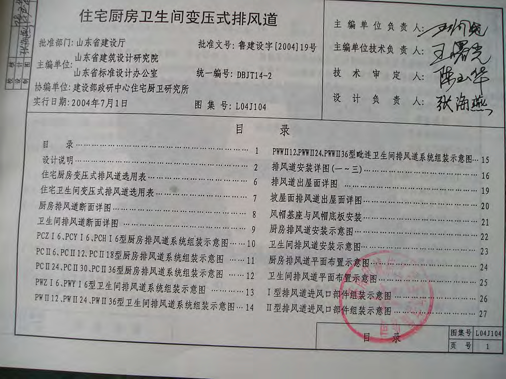 L04J104 山东住宅厨房卫生间变压式排风道图集