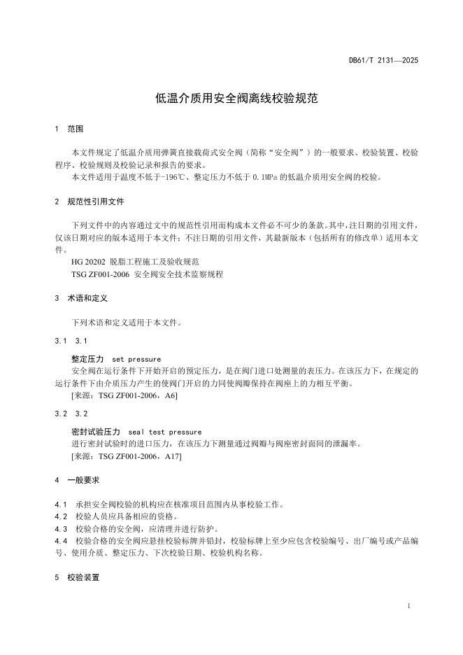 DB61/T 2131-2025 低温介质用安全阀离线校验规范
