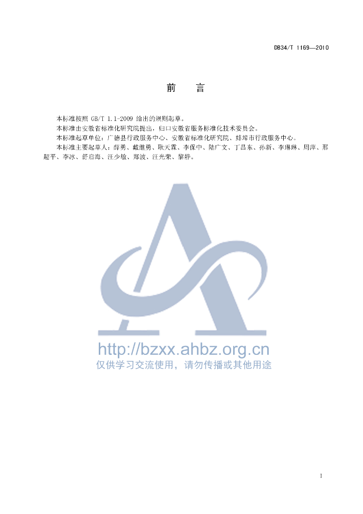 DB34/T 1169-2010 行政审批服务 服务基本要求