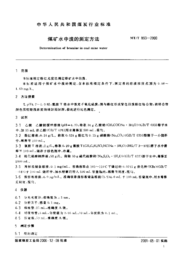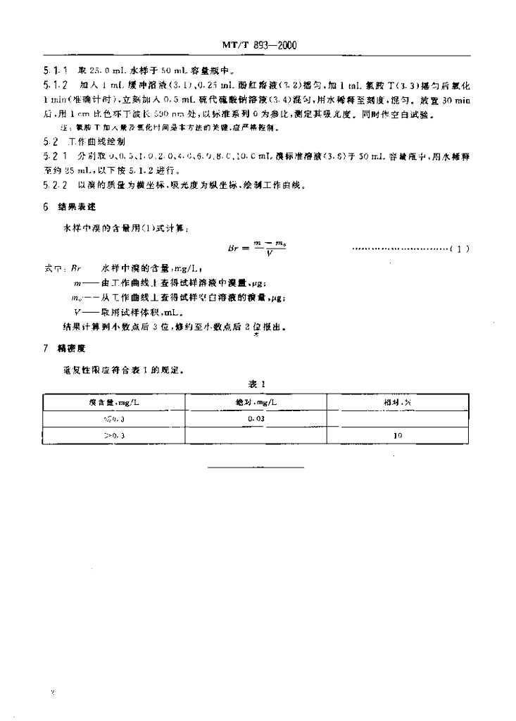 MT/T 893-2000 煤矿水中溴的测定方法